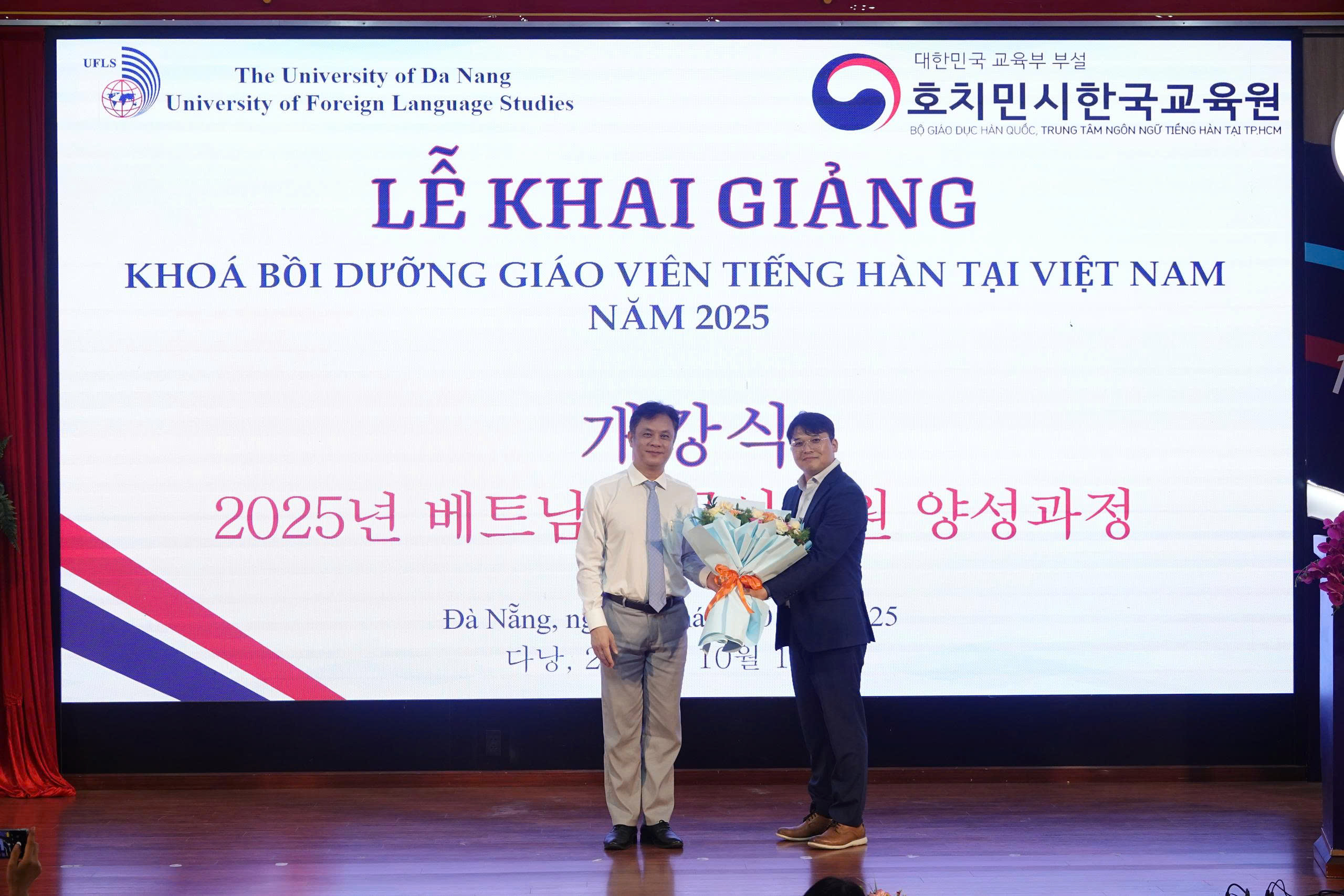 갤러리 (Gallery) 갤러리 디테일 (25.10.10.) 다낭외대 2025년 베트남 현지 한국어교원 양성과정 개강식 작성자 : 관리자 등록일 : 2025-10-13 조회 : 8 2025년 베트남 현지 한국어교원 양성과정 개강식다낭외대와의 면담 이전 (25.10.10.) 다낭교육청 방문 - 주다낭 대한민국 총영사관 참석, 다낭 지역 한국어 채택교 및 국제교류 확대를 위한 면담 다음 (25.10.11.) 다낭외대 한국언어문화학부 창립 20주년 행사 목록으로